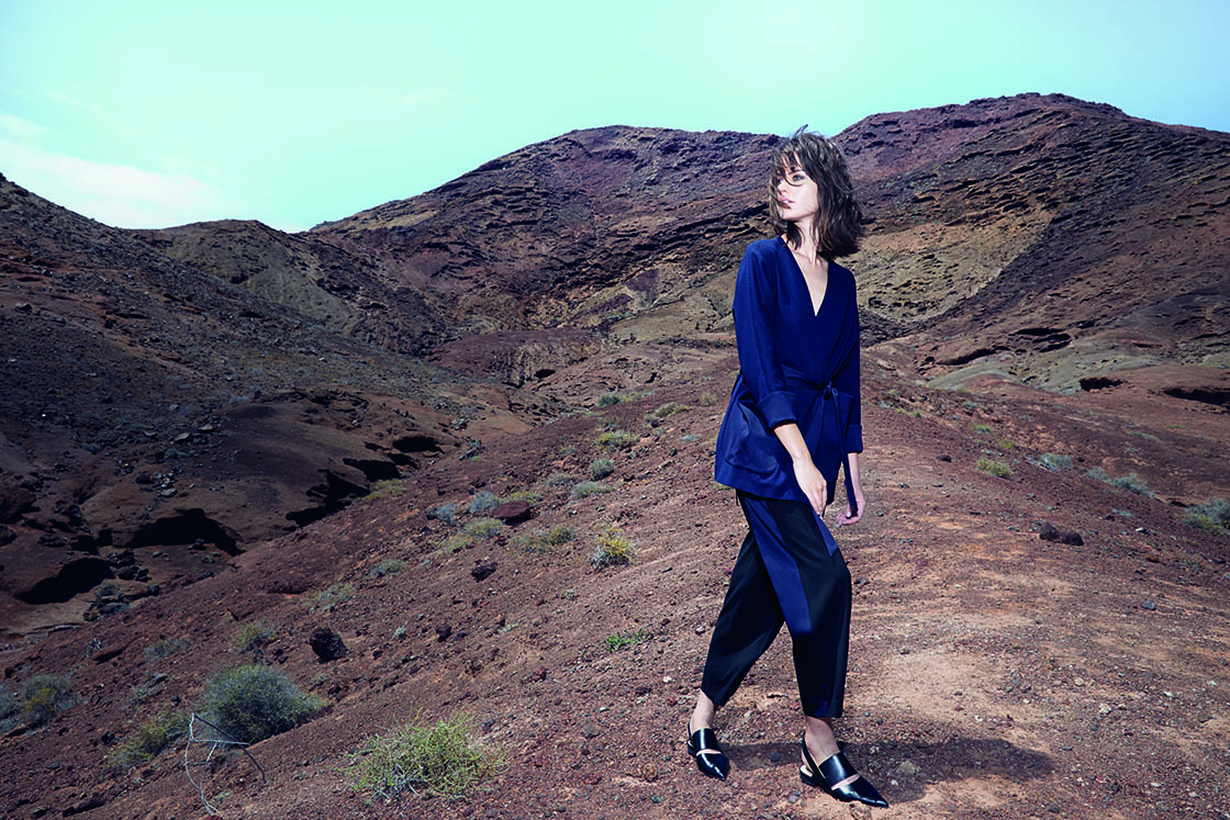 Torniamo a parlare di un brand al quale sono profondamente affezionata: Antonelli Firenze. E se la Collezione SS17 era incentrata sul concetto che il vero lusso è sinonimo di essenzialità, la Collezione per la prossima stagione si presenta invece come un viaggio metafisico in una infinita distesa paesaggistica – dove a far da scenario è l’ancora selvaggia isola di Lanzarote – qui forme e colori cambiano sinuosamente movimento, come una vera e propria danza che accarezza i corpi e asseconda la sinuosità e il movimento dei capi.