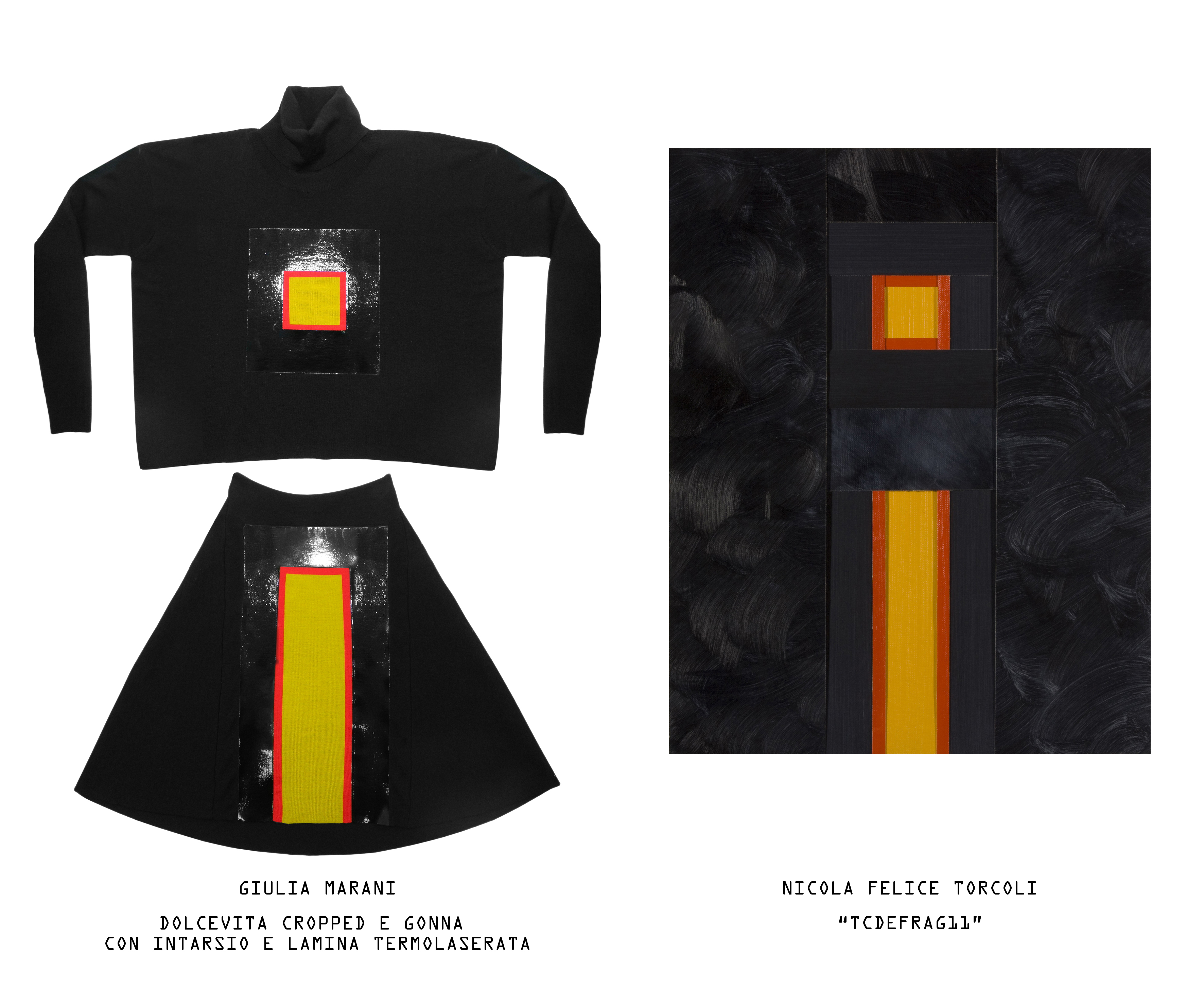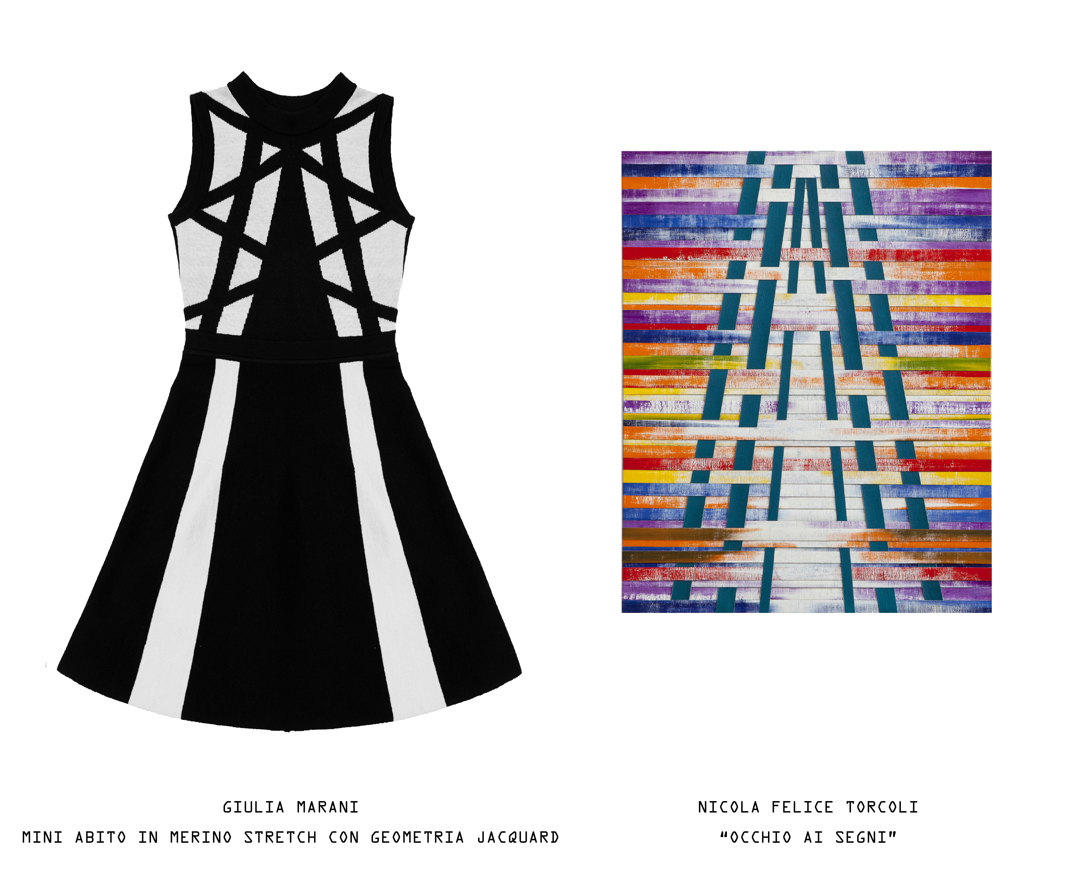 Così, dopo Alchimie” in collaborazione con Giulio Zanet e “ Click ”con Andrea Tonellotto, Giulia Marani per questo l’Autunno/Inverno ha voluto continuare il suo intento di fondere moda e arte dando vita alla collezione TETRIS in collaborazione col pittore Nicola Felice Torcoli.