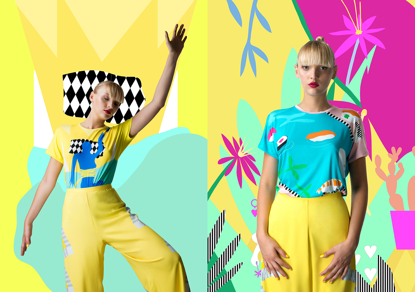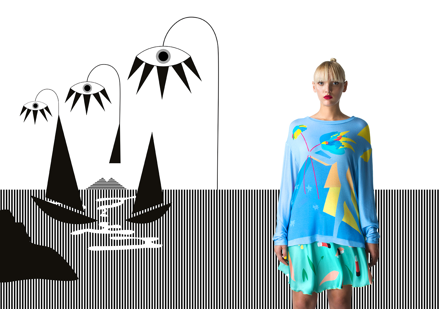 Gli abiti sono il frutto di un originale progetto: la traduzione delle immagini oniriche di ventitré sognatori, applicate su tessuti e forme che mescolano casual e chic, sete e cotone, in un gioco narrativo ed evocativo che rimanda fortemente all’idea di libertà.