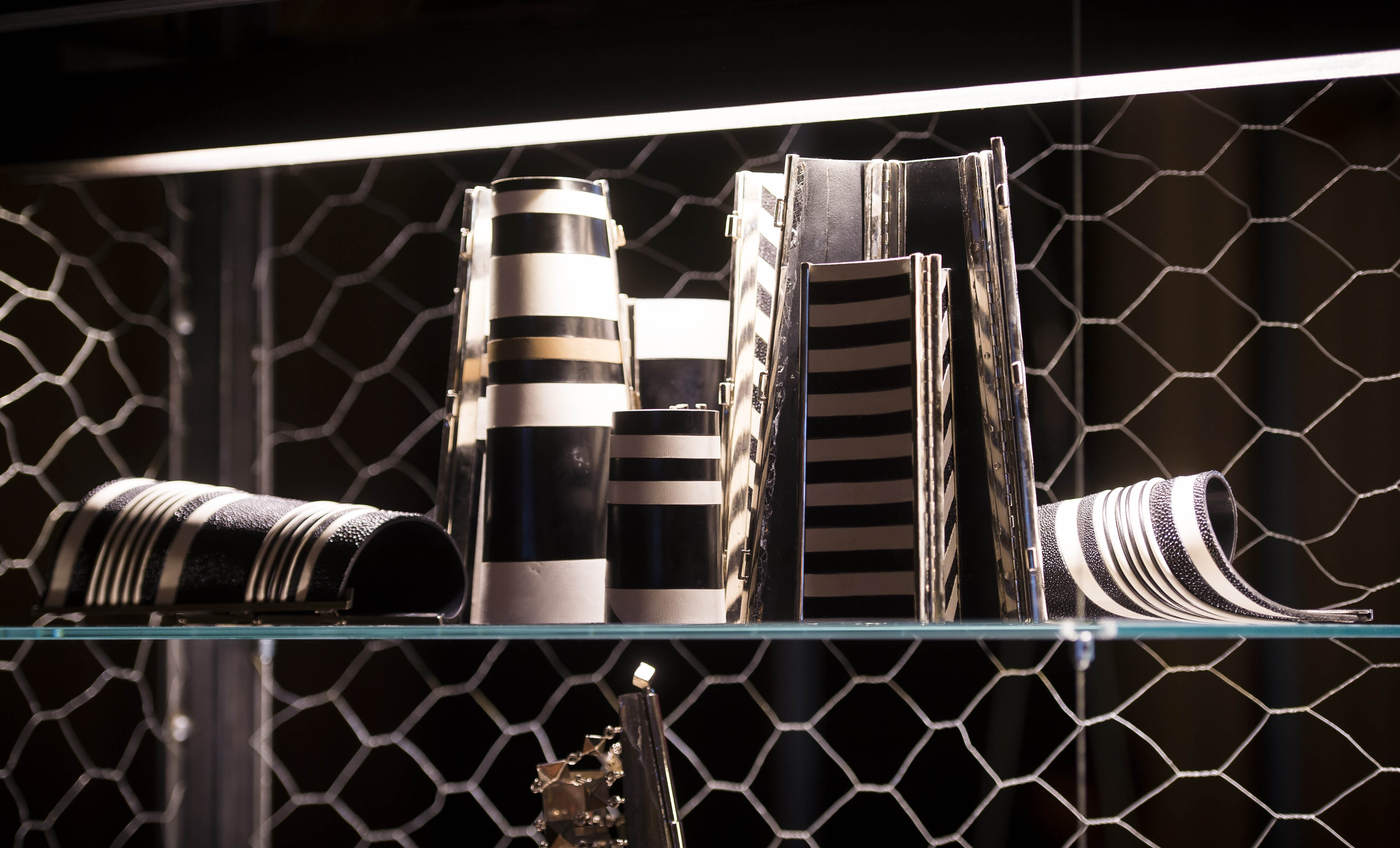 “Al rigore delle forme e al senso preciso del design corrispondeva l’intervento diretto sulla materia. Cuoio, metallo, plastica: materiali che io plasmavo, assemblavo, modellavo manualmente. Era già forte e determinante l’impulso a utilizzare materie insolite, diverse da quelle che la tradizione voleva fossero impiegate per la realizzazione degli accessori.”