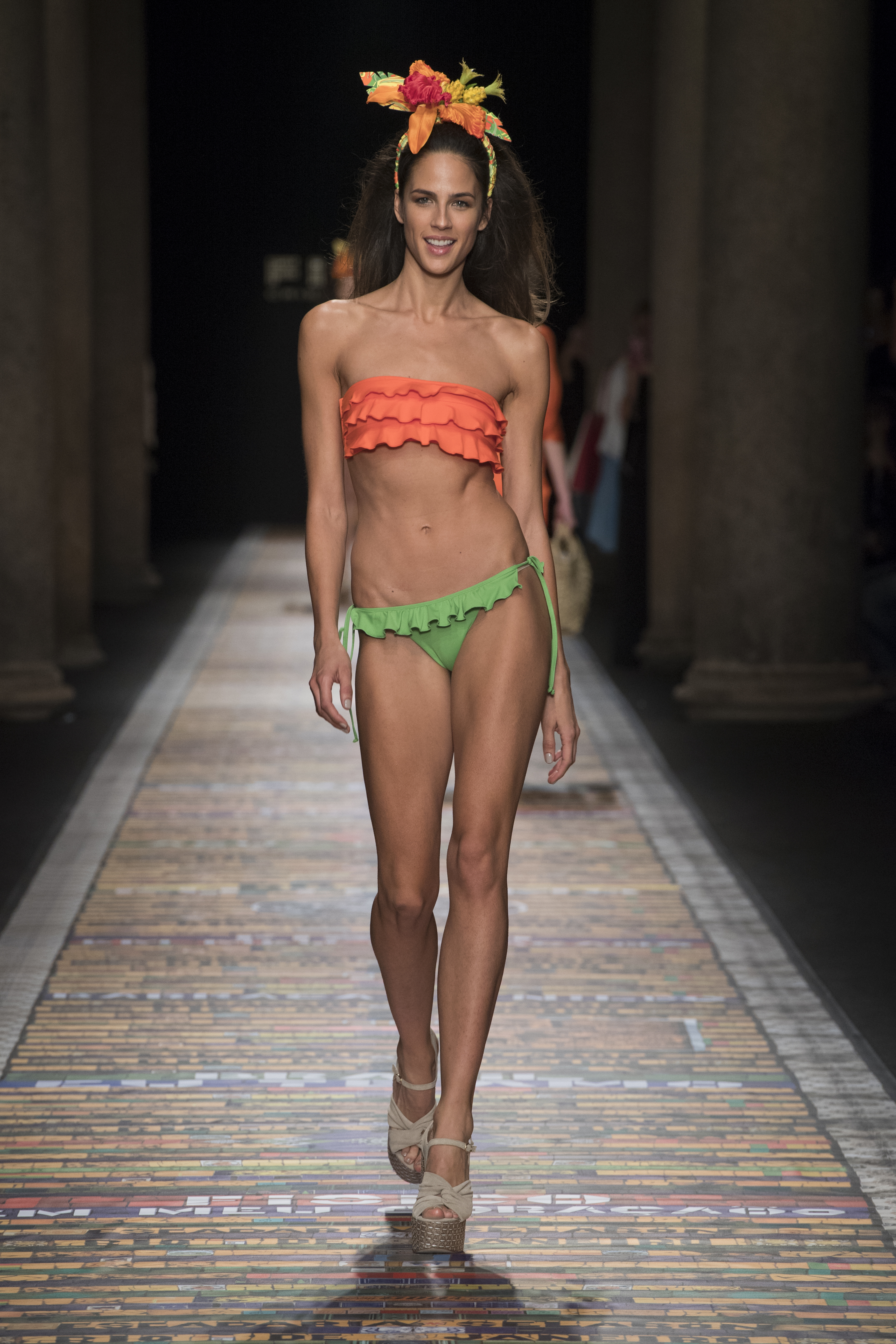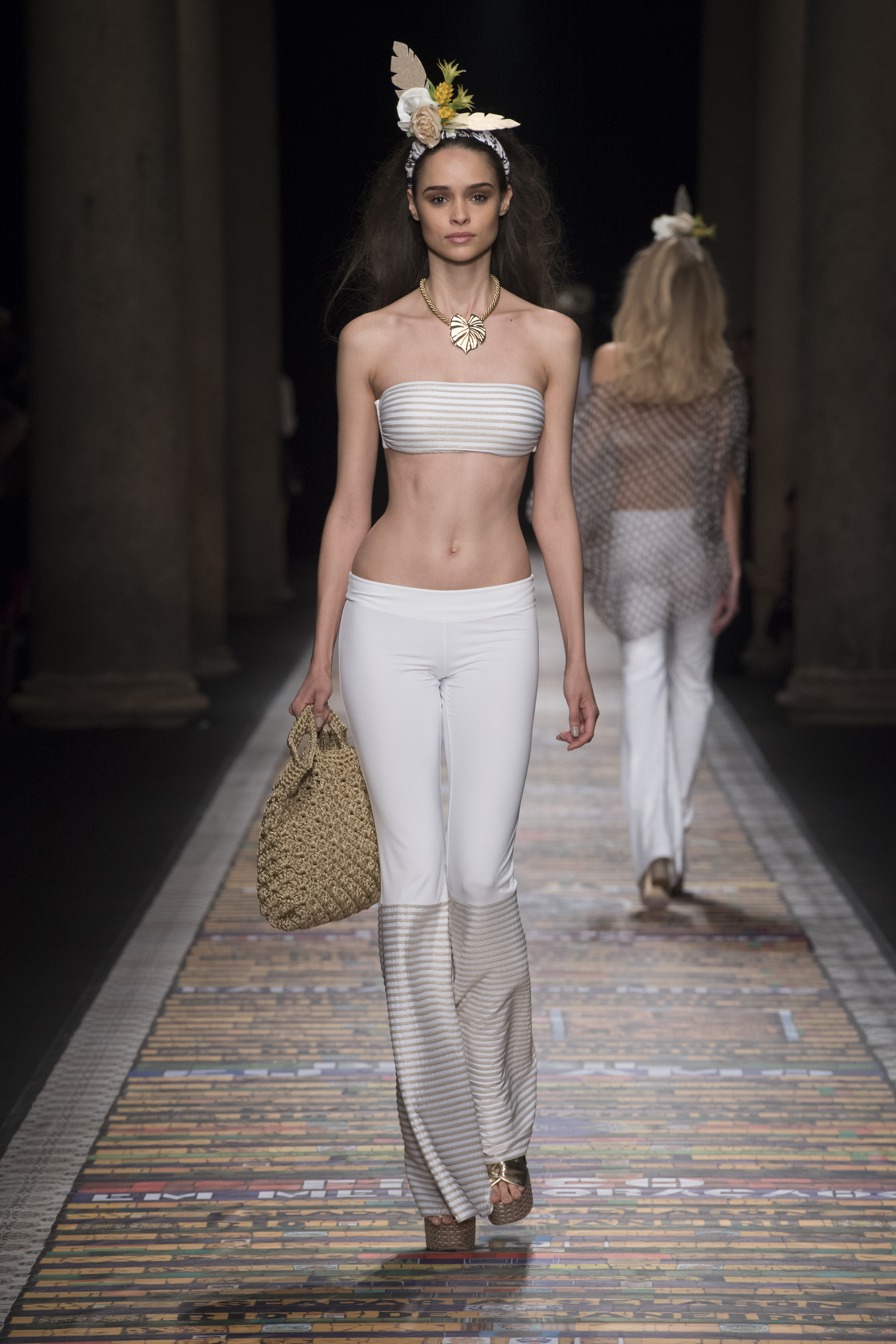 Di grande effetto le ruches degli abiti delle ballerine di samba, così come la serie di modelli in jeans con cuciture oro.