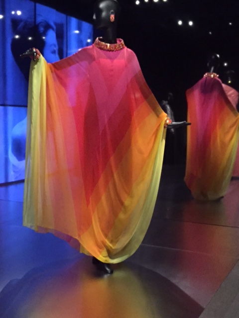 In scena, 60 abiti tra haute couture e ready-to-wear — da Giorgio Armani a Pierre BalmainBill Blass, Marc Bohan per Dior, Roberto Cavalli, John Galliano, Madame Grès, Valentino Garavani, oltre a sue creazioni —dal 1962 fino ai giorni nostri e a una serie di fotografie e video che la ritraggono.