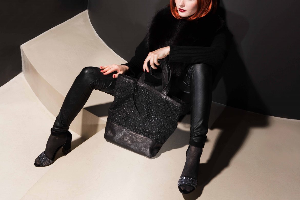 Novità della stagione è l’utilizzo della pelle d’agnello laserata con un disegno tipo pitone, lavata e colorata: una tecnica molto particolare che crea un effetto visivo quasi tridimensionale, mentre al tatto rende la pelle così morbida da ricordare quasi un tessuto.