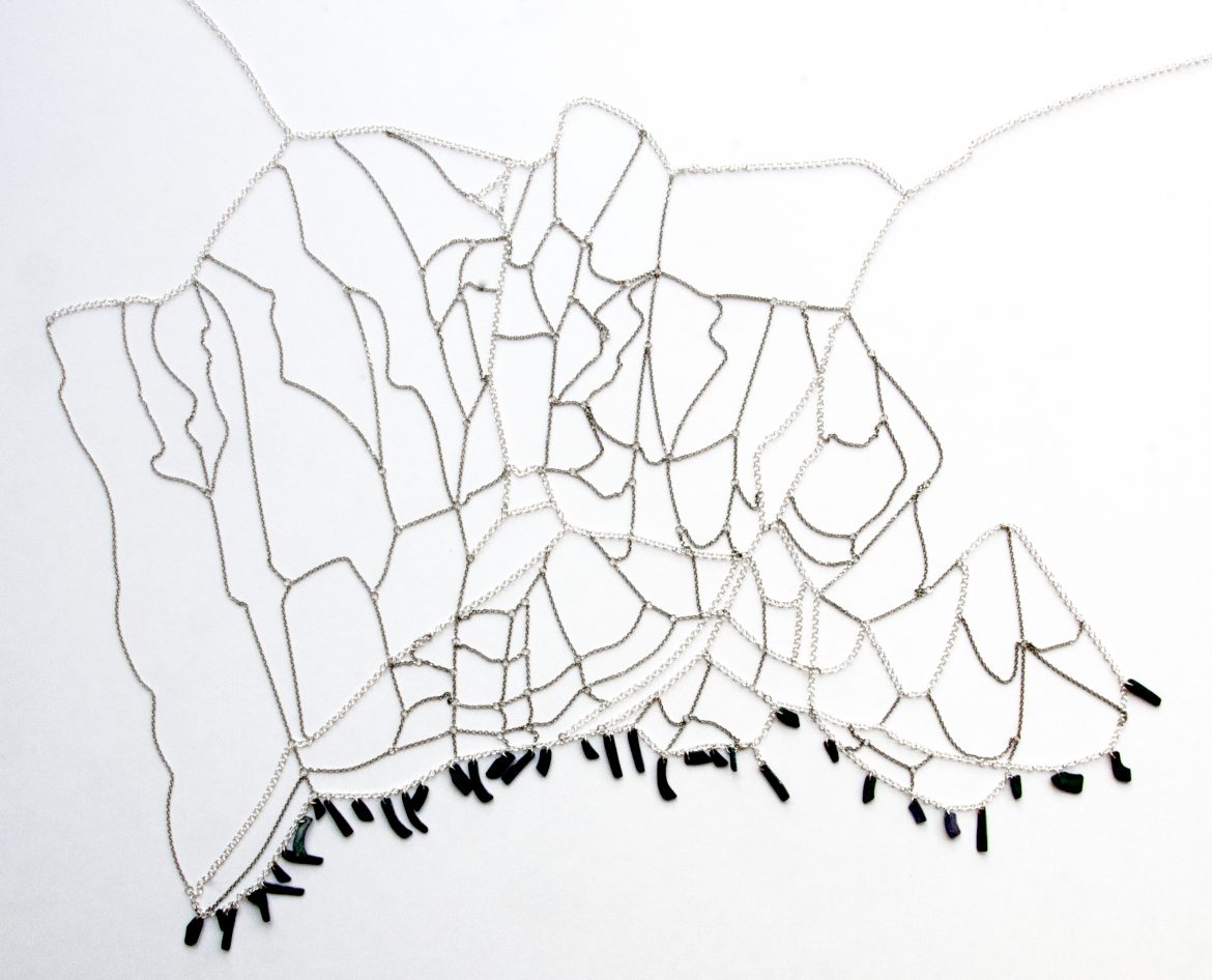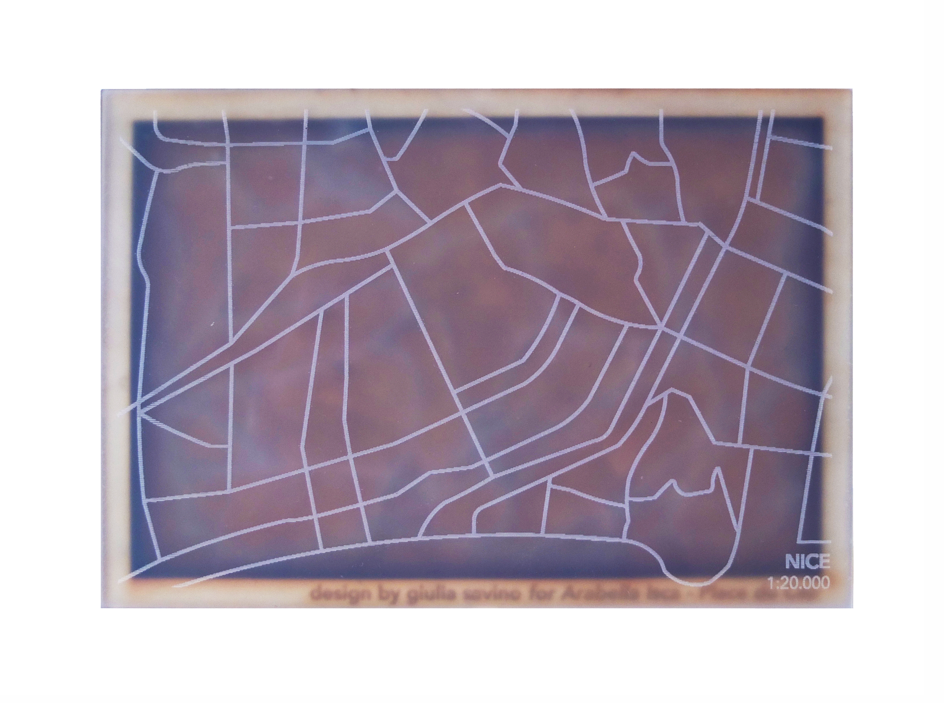 Giulia ha realizzato una serie di collane ispirate alle mappe delle principali città, come Parigi, Londra, Milano…ed è così che è nata l’idea di creare una collana che riproducesse la piantina di Nizza, e di devolvere una parte dei proventi alla Fondation de France.