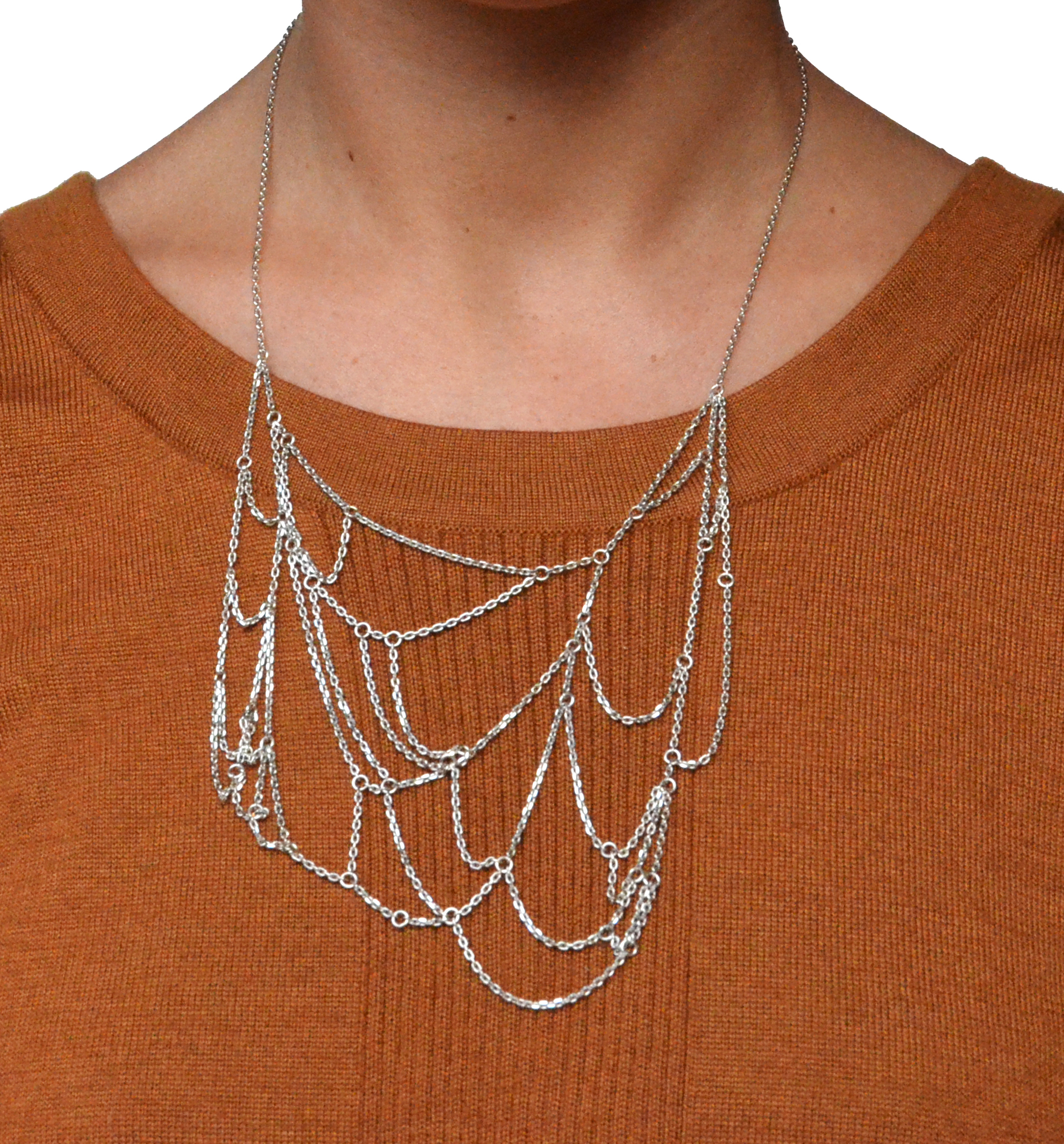 La collana “Nice” viene proposta in due versioni differenti, entrambi le varianti sono realizzate in argento 925 e la versione più grande presenta dei dettagli colorati in corno trattato.