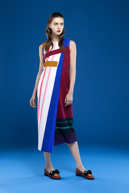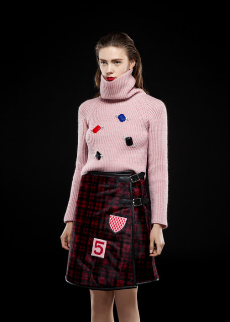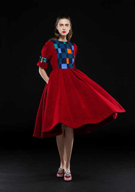 La silhouette gioca con i contrasti: cappotti, giacche e pantaloni sartoriali hanno linee affusolate e pulite, ma sempre con un tocco tagliente mentre gli abiti, sono femminili e voluminosi con uno squisito gusto retrò che si ritrova nell’ampiezza delle gonne a ruota a vita stretta, tipiche degli anni ‘60.